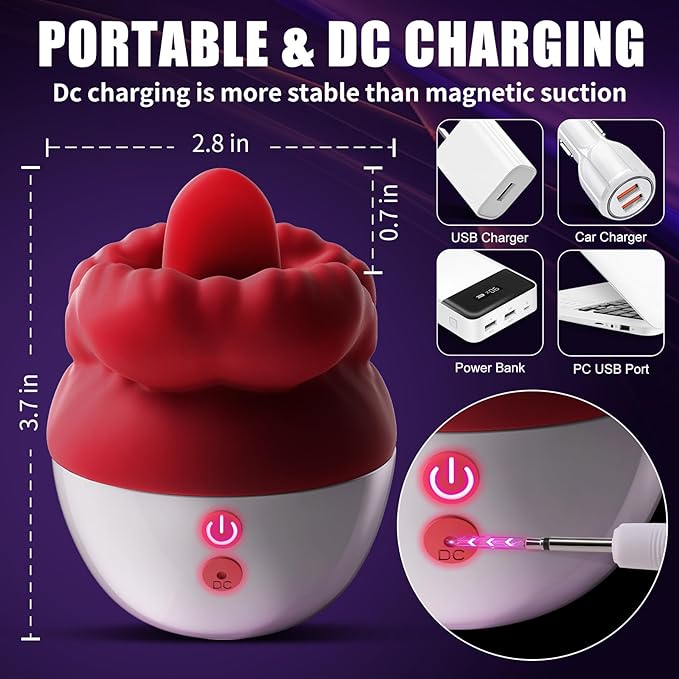 • 【USB DC Charging & Mini Portable】This rose sex toy clitoral vibrator can be charged using a DC Charging cable. Just plug it into your computer or power bank to recharge. It’s not only pretty to look at but also small and discreet enough to carry around without anyone knowing.